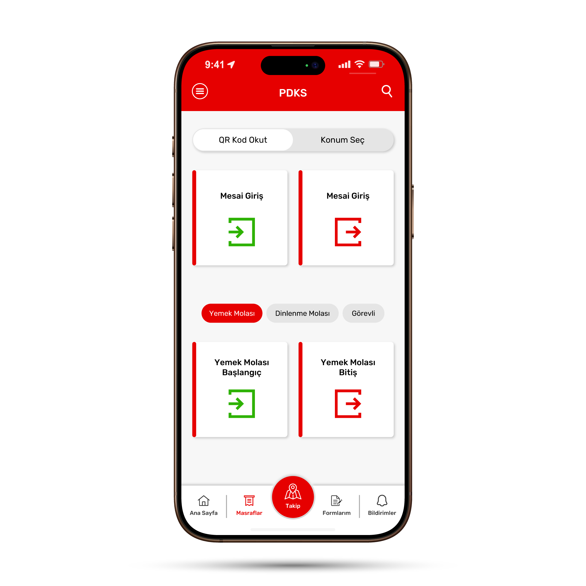 Çalışanlar giriş ve çıkışlarını mobil uygulama üzerinden QR kod ile yapar